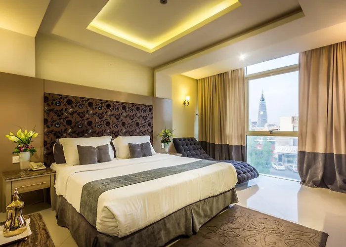 Merfal Hotel Apartments Al Taawan is the most popular budget accommodation 3.5 km from Kingdom Centre Tower providing a Jacuzzi, laundry service and housekeeping service.